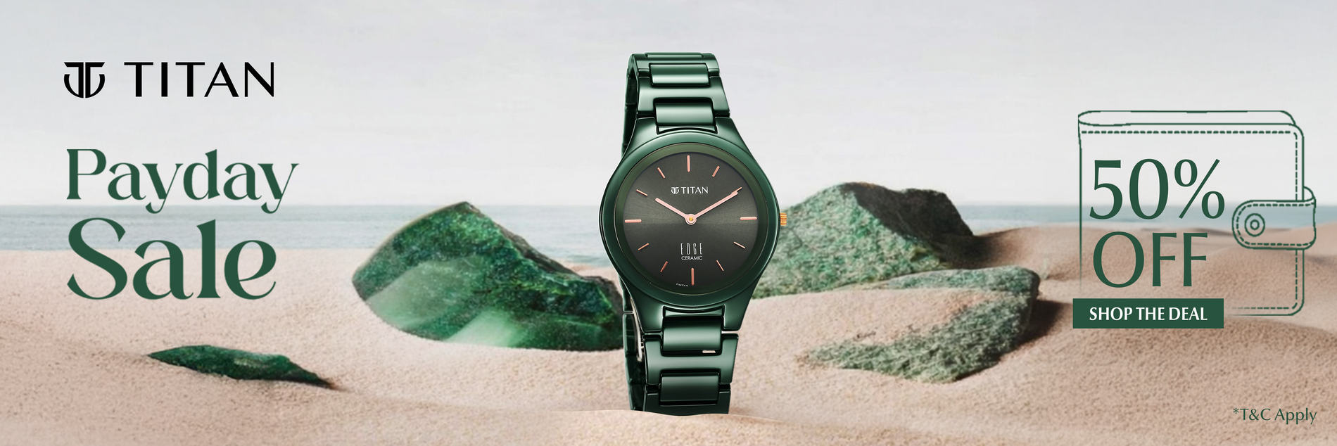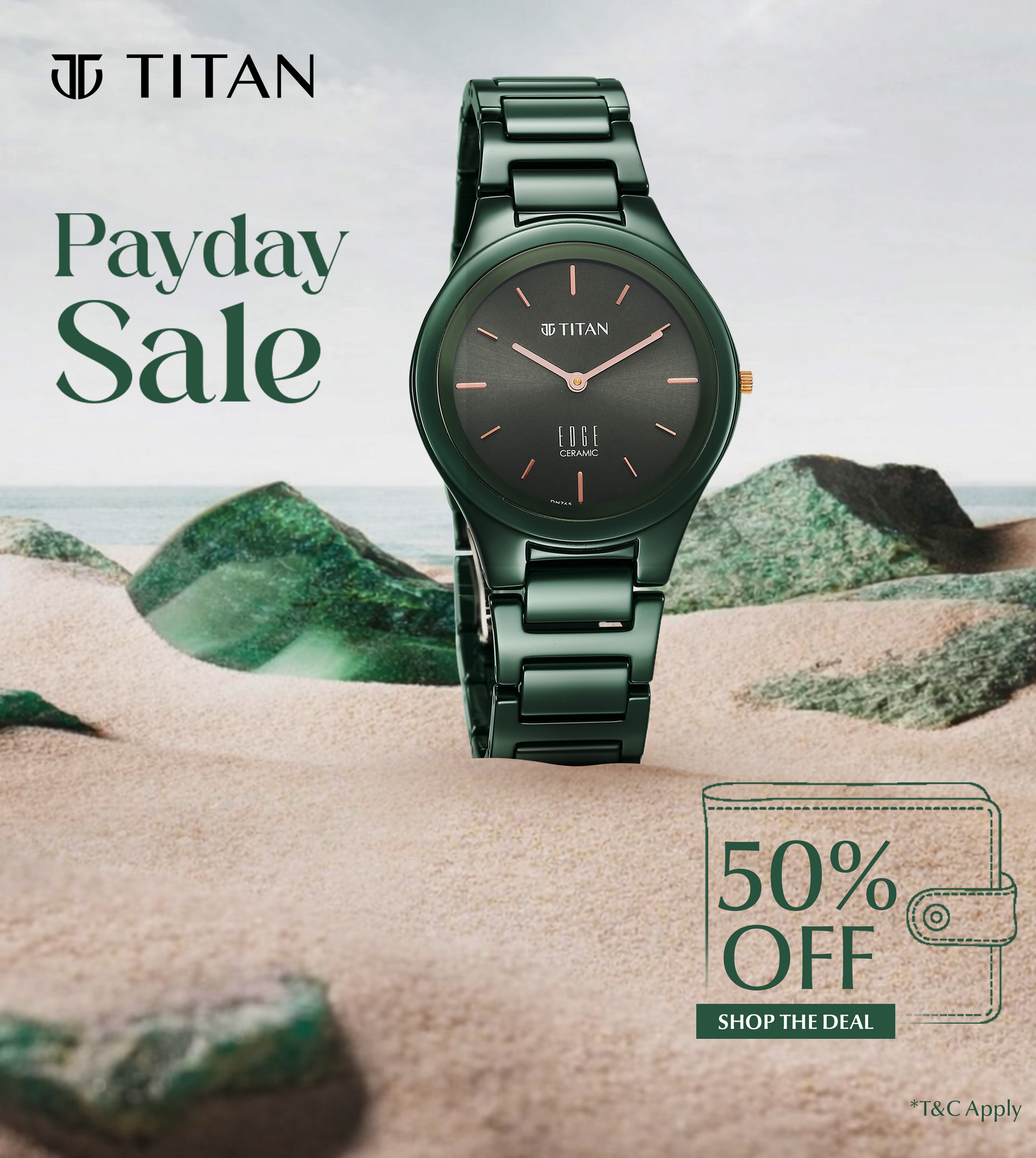 Titan Edge Ceramic Quartz Analog Green Dial Ceramic Strap Watch for Women