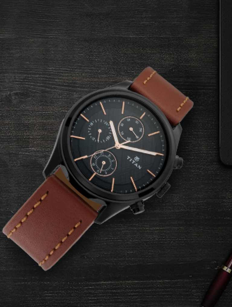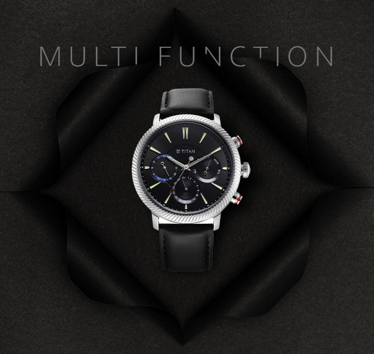 Titan Light Leathers Quartz Multifunction Black Dial Stainless Steel Strap Watch for MenGet 500k off with a minimum purchase of 3 million.